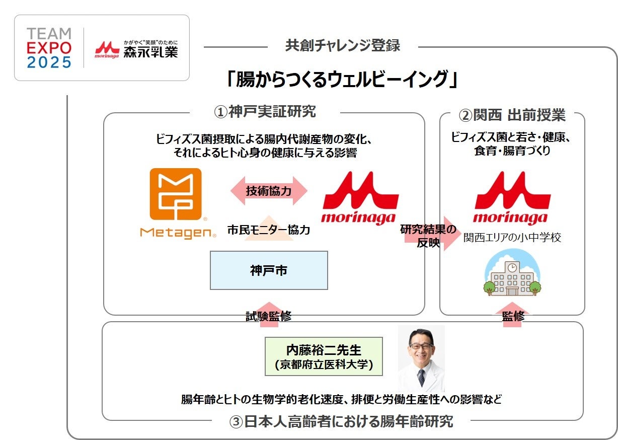 また、本実証研究を含む「腸からつくるウェルビーイング」をテーマとした活動が、2025年日本国際博覧会(以下、大阪・関西万博)の「TEAM EXPO 2025」プログラム/共創チャレンジ(以下、「共創チャレンジ」)に登録されたことをお知らせいたします。