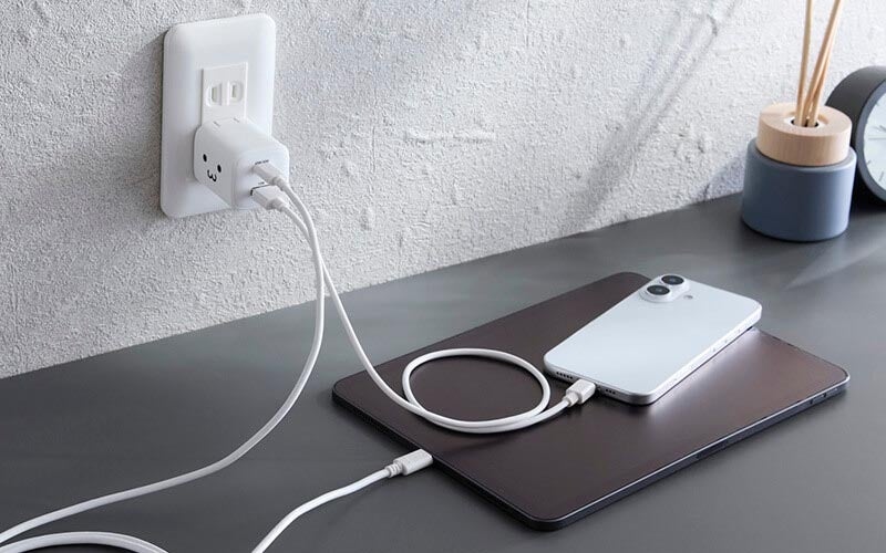 USB Power Delivery 40Wで充電可能。iPhoneなどのスマートフォンを2台同時に充電できます。