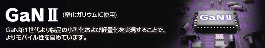 GaN II(窒化ガリウム)を採用し、高出力ながらコンパクトサイズを実現しています。