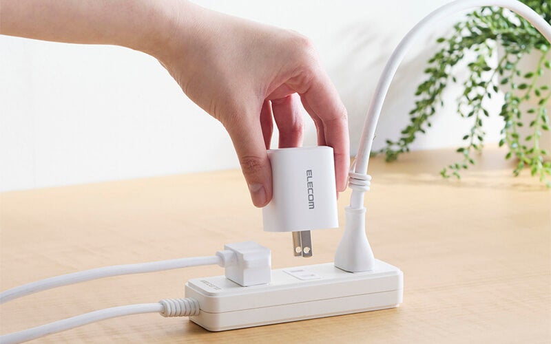 手のひらサイズのコンパクト設計に加え、スイングプラグを採用しているため、外出時の持ち運びにも便利です。安全性にも配慮した設計で、安心してお使いいただけます。