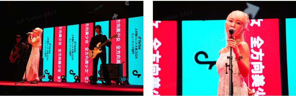 また、ミュージック部門賞を受賞した「全方向美少女」を歌う乃紫が、当日生パフォーマンスを披露しました。会場内は彼女の歌声に包まれ、観客たちからは大きな拍手と歓声が送られました。乃紫の魅力的なステージは、授賞式に一層の華を添えました。