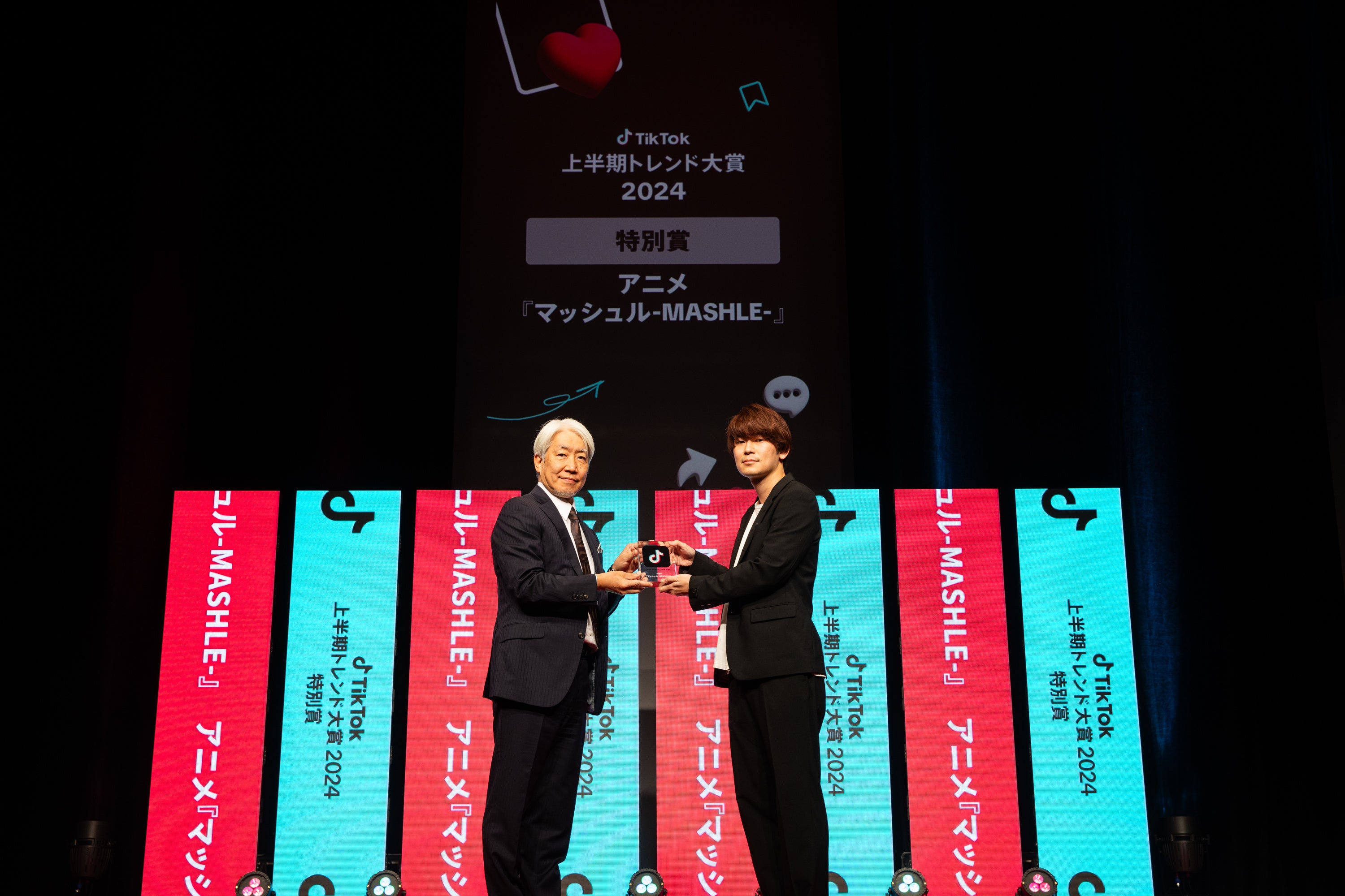 この度は「TikTok上半期トレンド大賞2024」特別賞をいただきありがとうございます!TVアニメ『マッシュル-MASHLE』第2期のOPを公開した直後より世界中から凄まじい反響をいただいていましたが、まさかここまでに至るとは…。国境を越えて多くの方にTikTokを通して作品を楽しんでいただき嬉しく思います。そして、素晴らしい楽曲を提供いただいたCreepy Nutsさんと、アイデアが詰まった映像を生み出されたOPディレクターの榎戸駿さん、そのアイデアを形にしてくれたアニメーション制作のA-1 Pictures、そして、その映像を楽しみ、多くの動画を世に発信してくれたファンの方々に感謝です!これからも応援よろしくお願いいたします!