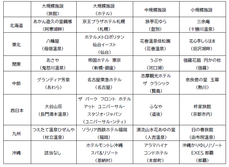 ■2022年度サービス最優秀旅館・ホテル (エリアごとの優秀旅館・ホテルは別紙)