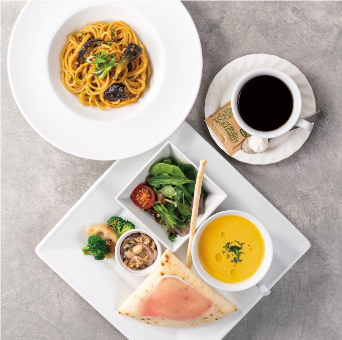 季節のピアットウニコなら、ワンプレートに盛り込んだ前菜5種とハーフサイズの「雲丹と九条葱のスパゲッティ」とドリンクで一度にいろいろ食べたい気持ちが満たされます。