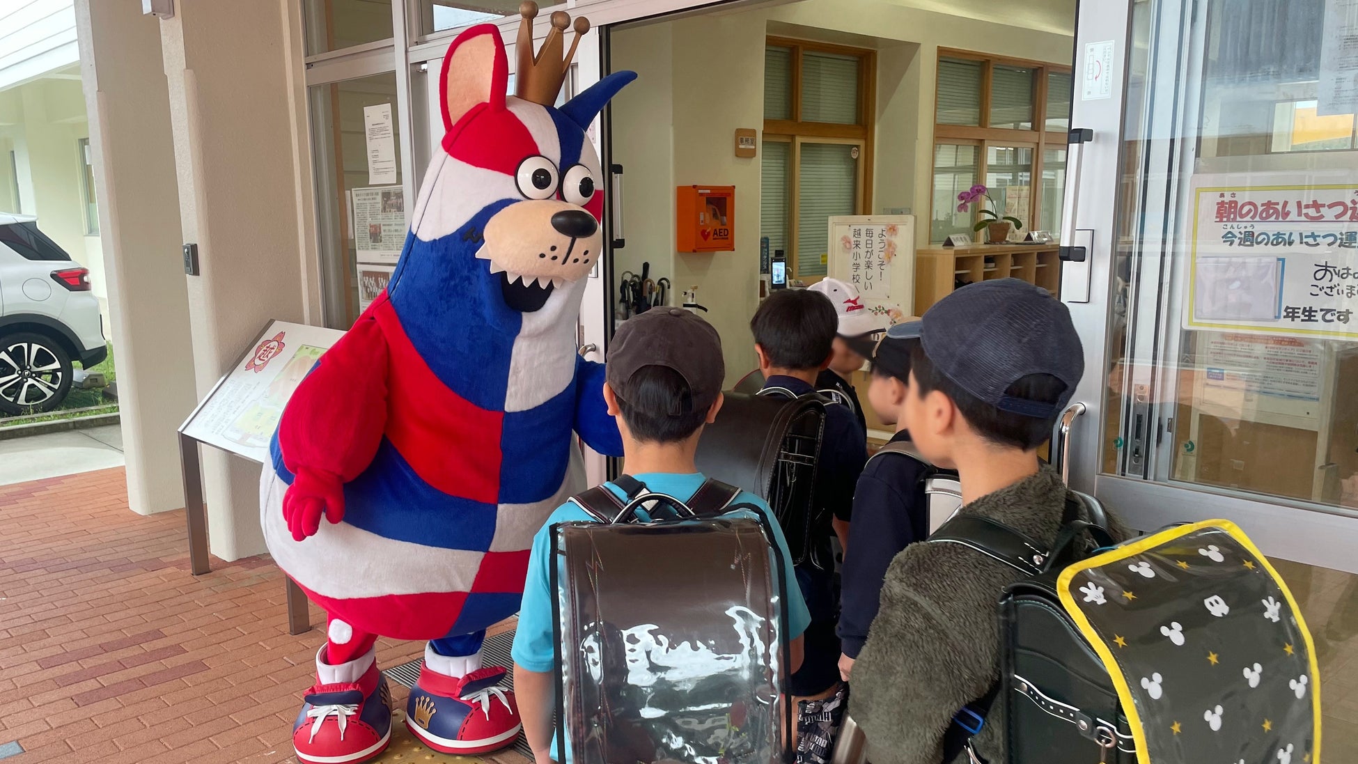 今回は、「ゴーディーと一緒にあいさつ運動をしたい」と自主的に参加してくれる児童や、朝練を終えた後に自主的にあいさつ運動に加わってくれる生徒たちもおり、活気に満ちた朝のひとときとなりました。
