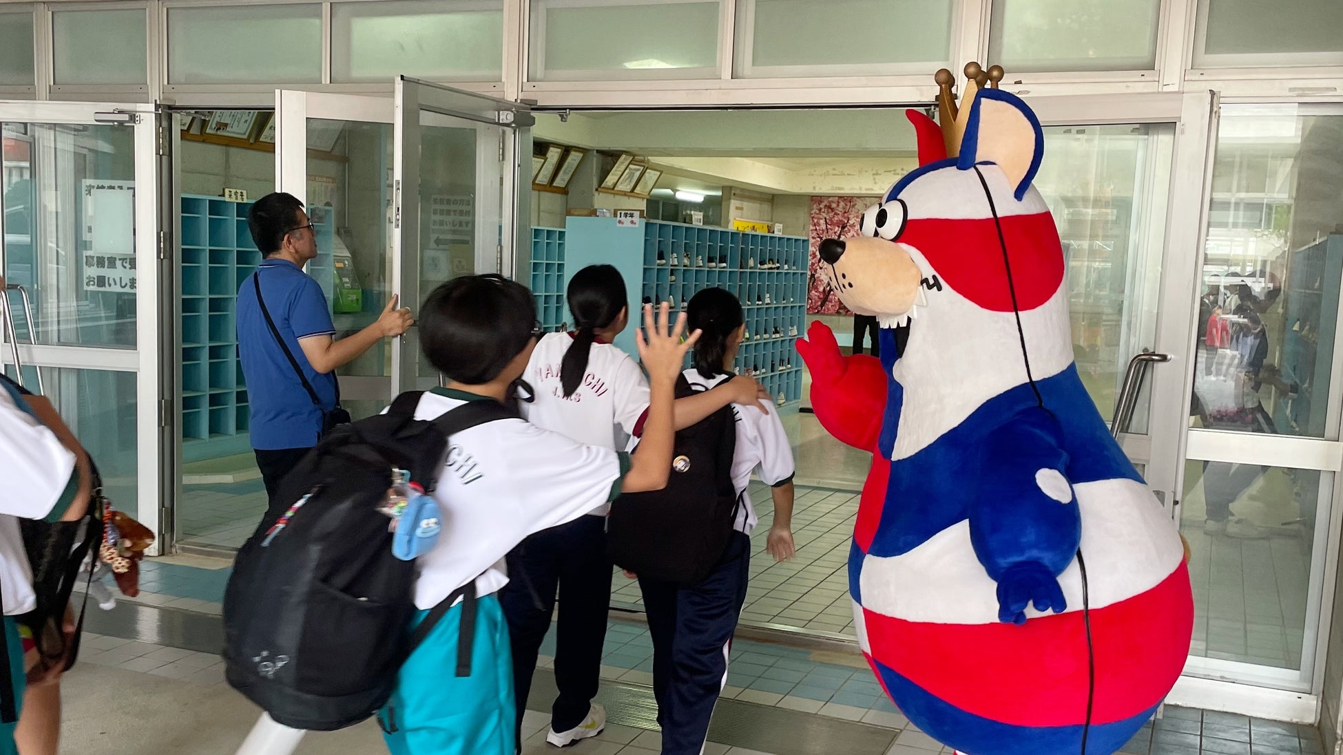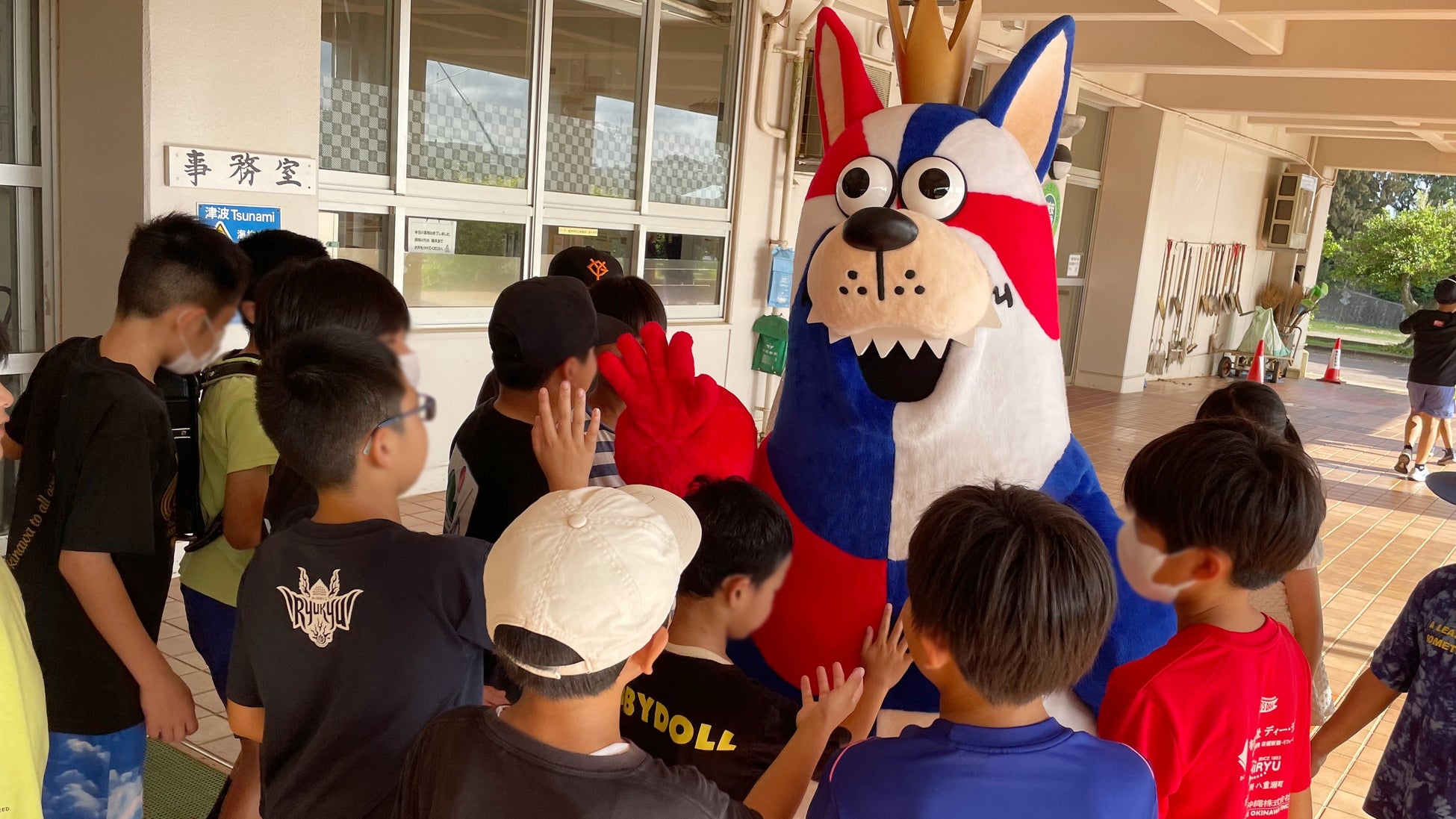 「おおきなわ」の活動の一環として実施している「ゴーディーによる朝のあいさつ運動」において、5月はホームタウン沖縄市および豊見城市の小中学校を訪問しました。ご協力いただいた各学校の皆さま、ありがとうございました。