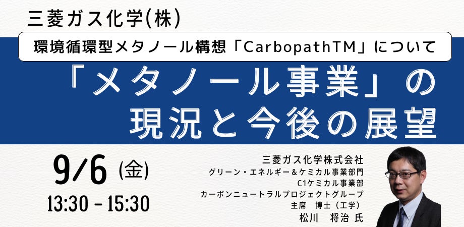 主席 博士(工学) 松川 将治 氏を招聘し、「メタノール事業」の現況と今後の展望について詳説いただくセミナーを開催します。