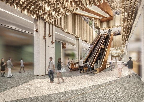 地下1階~3階には、多様な来街者のニーズに応える商業施設を整備し、街区のにぎわいの中心を担います。隣接する日本橋一丁目三井ビルディング(通称:サウス)とは地上2階・地下1階で接続し、東京ミッドタウン日本橋として約20,000㎡の一体の商業施設となります。上質かつ洗練された国際都市にふさわしい新たな商業環境を創出します。
