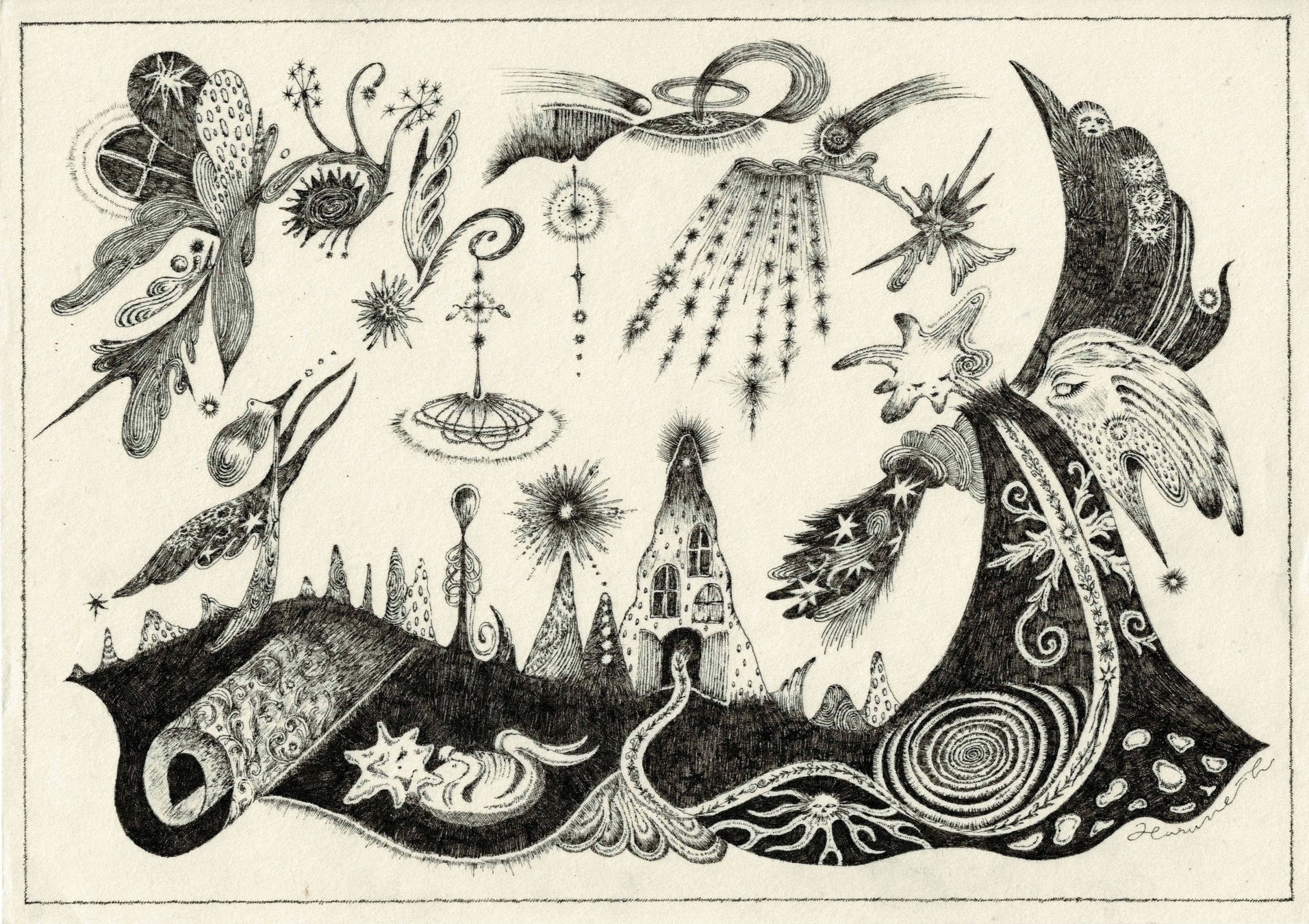 筆を動かすたびに、私は“心地よい曲線”を探しているように感じます。それは単なる美しさではなく、どこかで出会った記憶の欠片や、まだ見ぬ場所へ続く道しるべのようなものです。