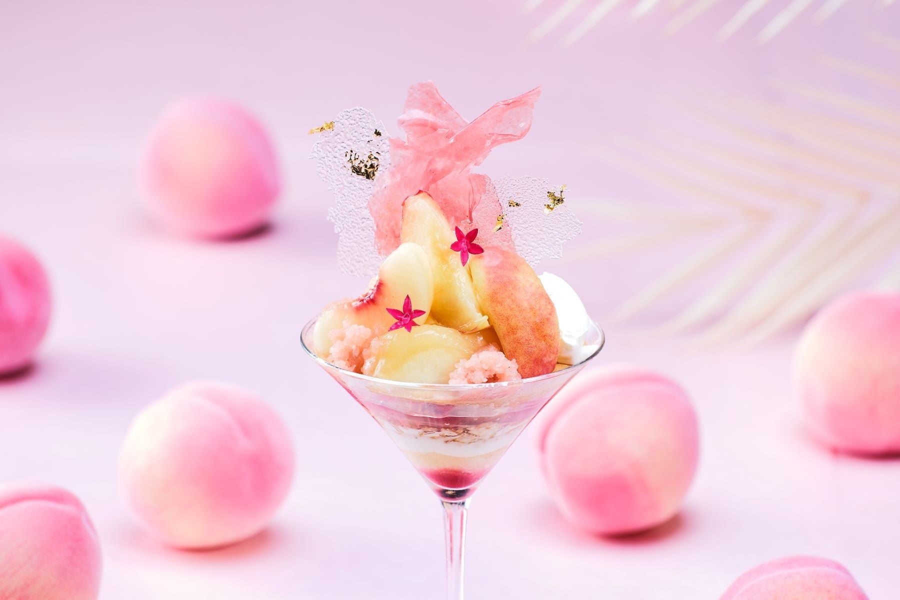 夏を感じさせる爽やかな見た目と味わいが特徴の限定パフェは、旬の”桃”を贅沢に使用し、華やかで可愛らしいパフェに仕上げました。