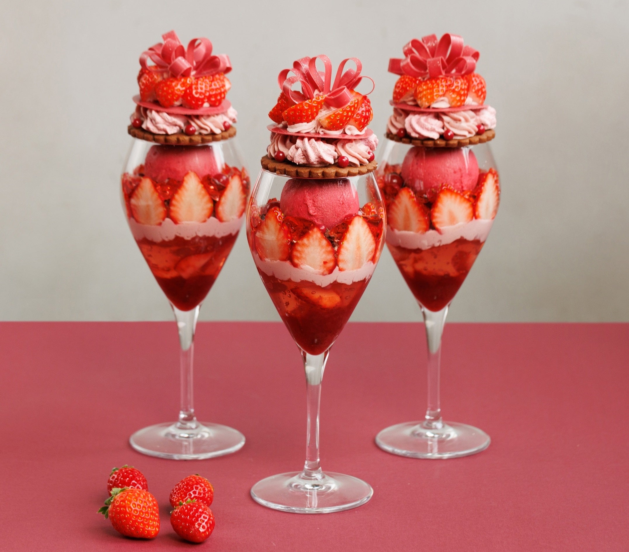苺とローズのパフェ Parfait aux Fraises Rose 〜OKURIMONO〜
