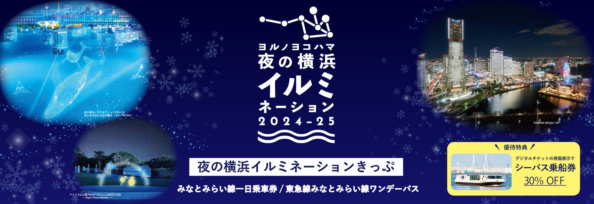 横浜高速鉄道株式会社(以下、横浜高速鉄道)と東急電鉄株式会社(以下、東急電鉄)は、「夜にあらわれる光の横浜〈ヨルノヨ2024〉」をはじめ、横浜を代表する観光地などで40を超えるイルミネーションイベントが開催される「夜の横浜イルミネーション2024-25」をおトクで便利に楽しめる「夜の横浜イルミネーションきっぷ」(以下、本きっぷ)を東急電鉄が提供するデジタルチケットサービス「Q SKIP」の販売サイト上において、2024年12月4日(水)から2025年1月14日(火)までの期間限定で発売します。