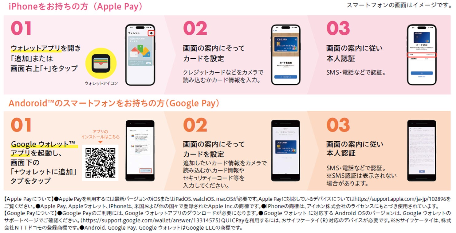 ◆ご利用に伴い必要な Apple Pay または Google Pay の登録方法