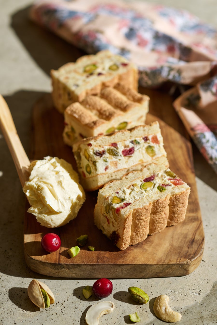 いろとりどりの果実が映える断面に合わせ、生地にも模様をつけ、華やかな見た目にもこだわりました。夏季は冷やして召し上がりいただくのもおすすめです。
