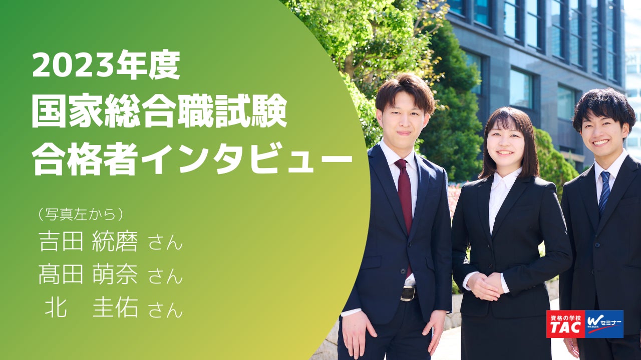 中央省庁の幹部候補(官僚)として、政策企画立案、法案作成、予算編成などに携わる国家総合職。国家をデザインするダイナミックな仕事を行うのが特徴です。今回は、2023年度国家総合職試験に合格したTAC・Wセミナーの内定者3名に、官僚をめざしたきっかけやTAC・Wセミナーの活用方法、これから実現したいことなどをお聞きしました。