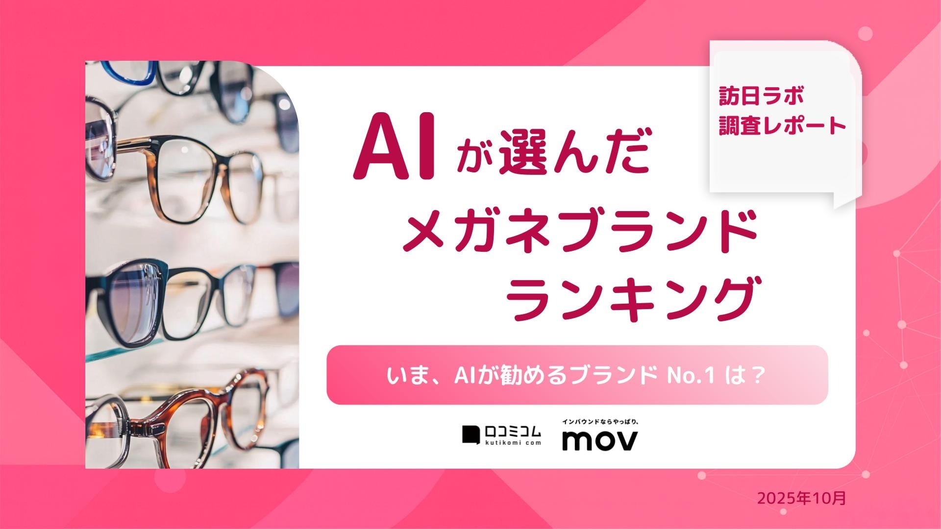 業界最大級のインバウンドビジネスメディア「訪日ラボ」及び 店舗向け集客一元化プラットフォーム「口コミコム」を運営する株式会社mov(代表取締役:渡邊 誠、本社:東京都渋谷区、以下mov)は、生成AIの回答データを集計・分析した独自調査『AIが選んだメガネブランドランキング』を発表しました。