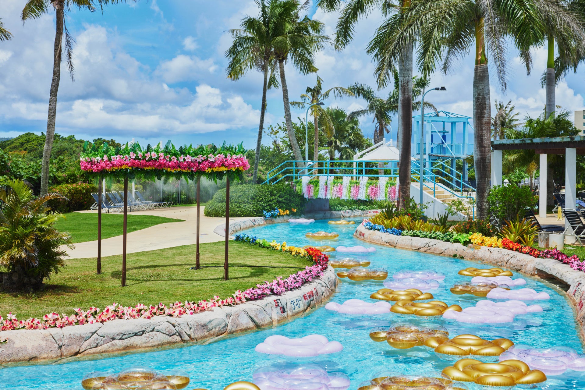 ウォーターパーク全体を囲むように流れる、全長360メートルのリバープールに、フローティングしながらカラフルな花を眺めることができる、花咲くエリアが新登場。南国らしい鮮やかな色合いの花を眺めたり、写真撮影が楽しめます。