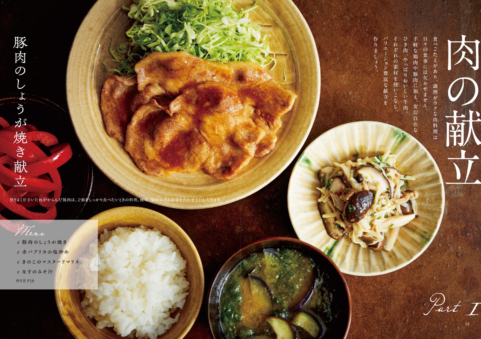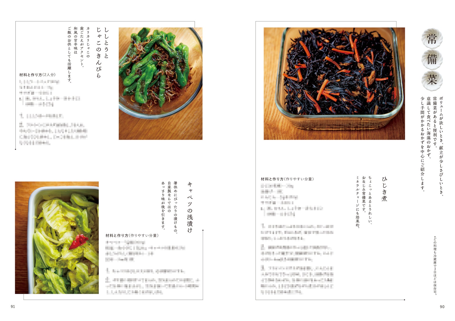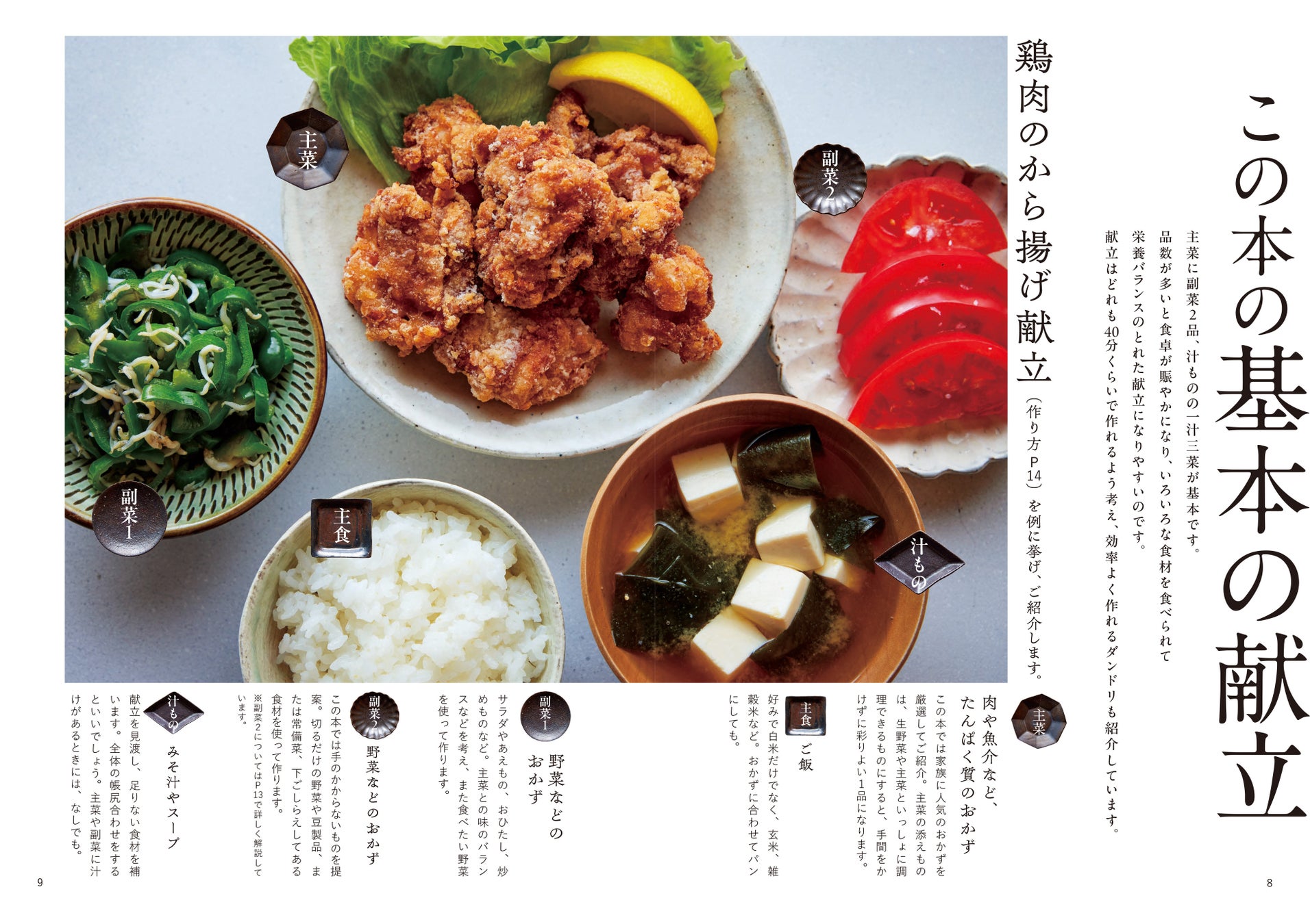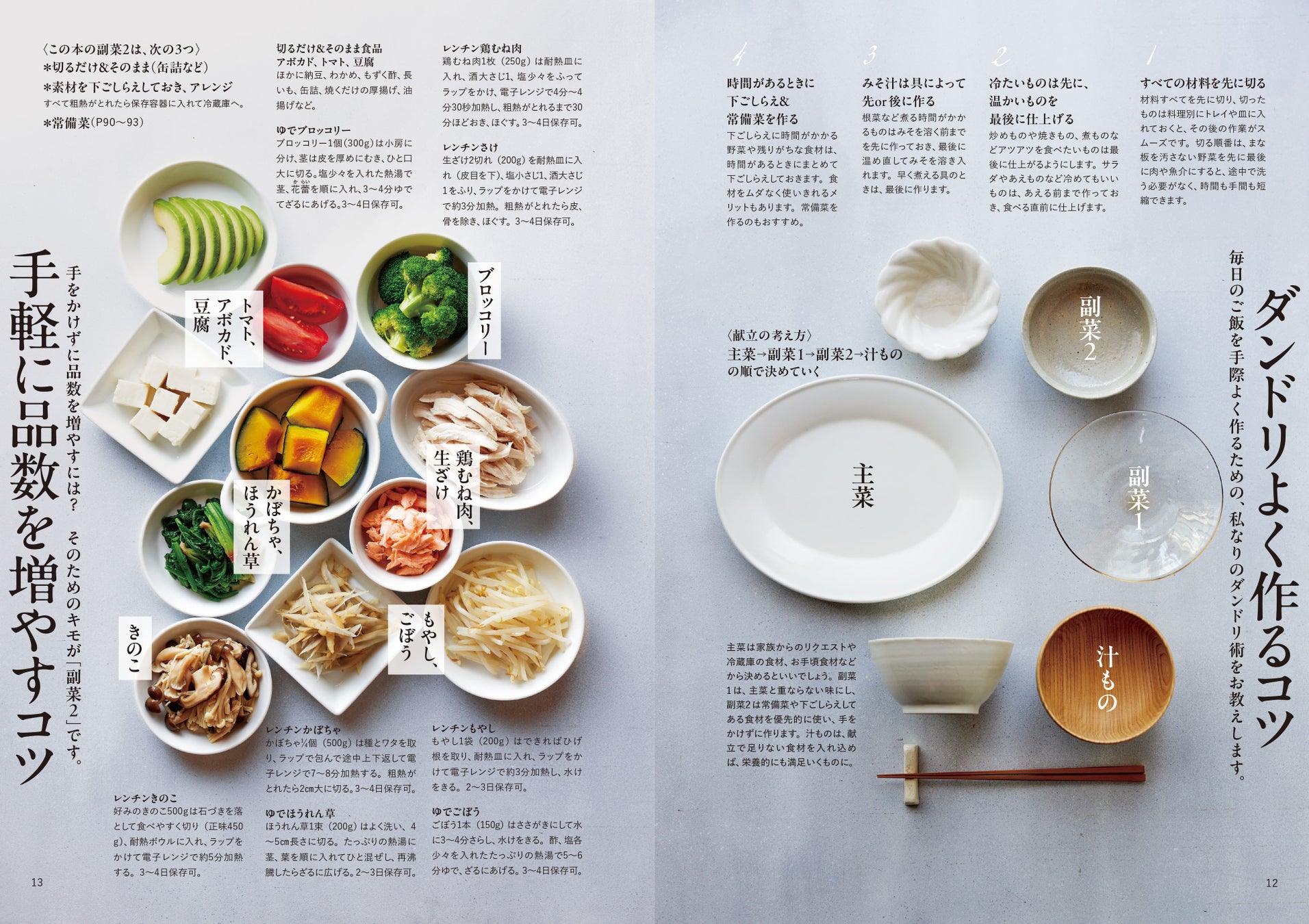 毎日のご飯を手際よく作るための石原さん流の工夫も満載。手軽に品数を増やすコツや、ボリュームが欲しいとき・献立が少しさびしいときに役立つ常備菜のレシピも。