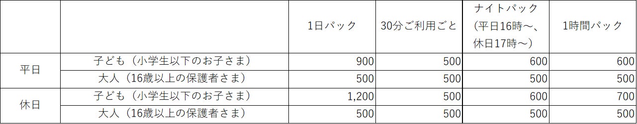 ●低価格で遊べる!平日こども1日パック900円!当社無料アプリ「トットット」会員さまご利用料金