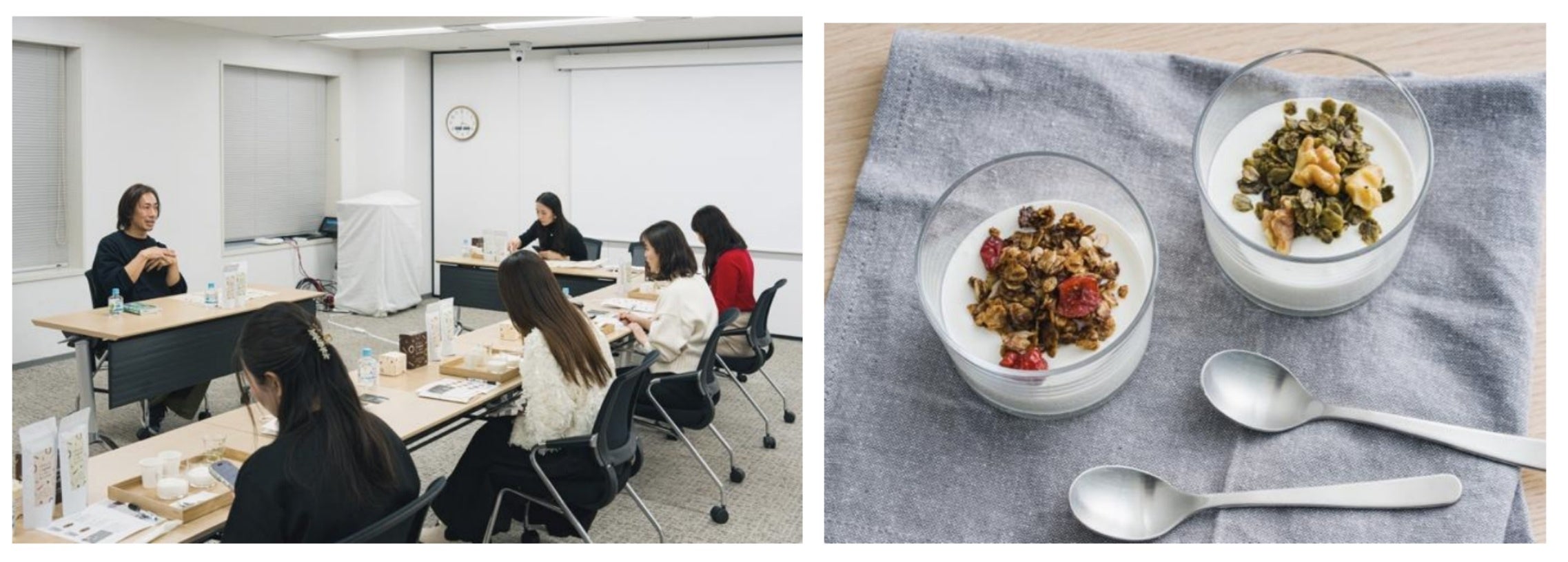 オズレポーターズの皆さまには、2種類のグラノーラをより深く知っていただける様にそのままの試食とヨーグルトに合わせた2通りの試食を行い、よもぎや山野草、原料に使われている素材本来の美味しさを存分に味わっていただきました。