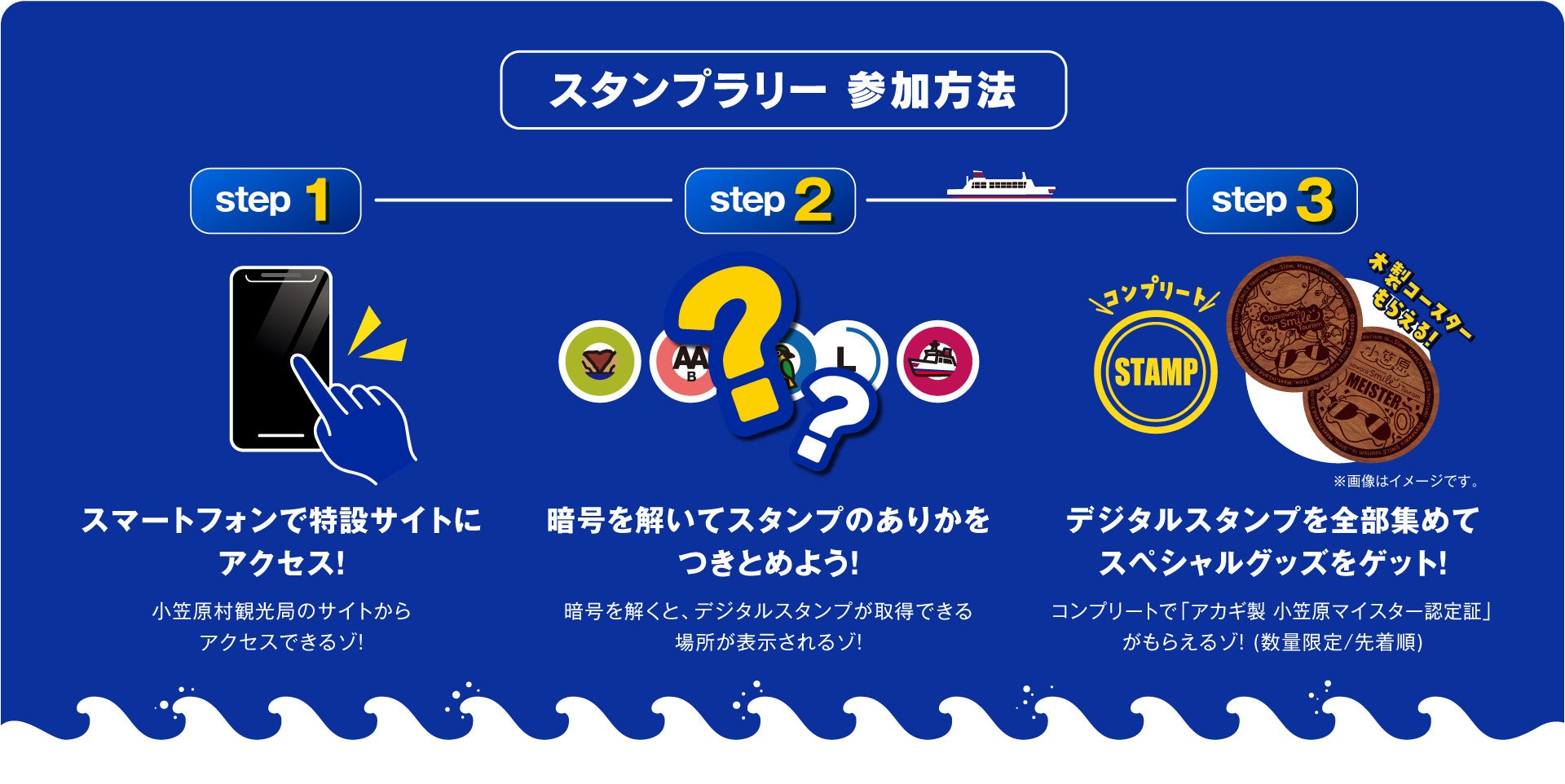 特設サイトにアクセスしていただき、小笠原にまつわる暗号を解いて地図を入手したのち、都内4箇所に設置された秘密の場所にあるポスターのQRコードを読み取ることで、デジタルスタンプを取得。デジタルスタンプを全部集めると「小笠原マイスター認定証」のプレゼントに応募することができます。