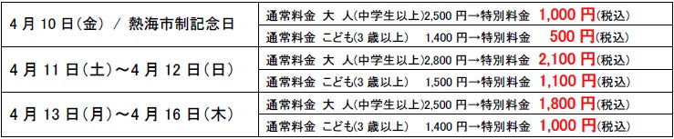 【箱根小涌園ユネッサン】4月10日(金)は熱海市制記念日!「勝手に熱海市民割!」キャンペーン実施!4月10日当日は入場料が1,000円ポッキリで超おトク!