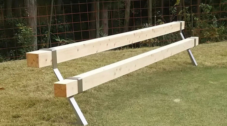 角材2本でできた、シンプルで美しいベンチ。国産の虫に侵された木材=あかね材(虫食い材)を使用。使用後もパルプなどに2次加工ができるので、環境にやさしいベンチとしての評価を得ています。