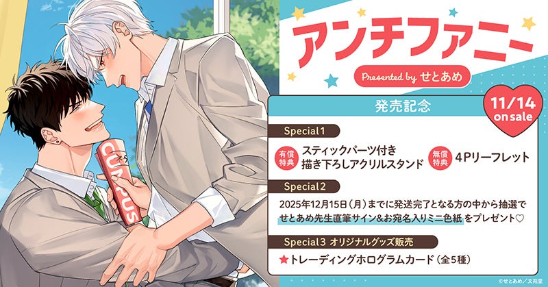 直筆サイン入りミニ色紙が当たる!せとあめ先生「アンチファニー」発売記念キャンペーン開催!【ホーリンラブブックス】