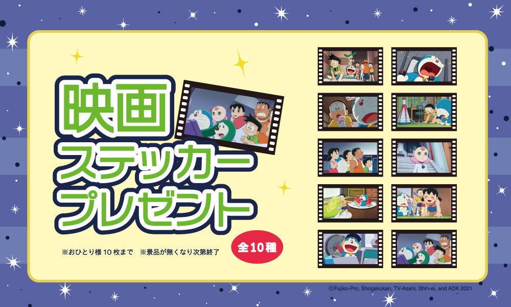 内容:『映画ドラえもん のび太の宇宙小戦争 2021』公開記念「映画ステッカー」(非売品)をプレゼント