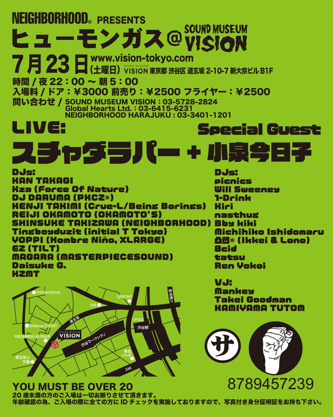 NEIGHBORHOOD主催の伝説的なDJイベント “HUMUNGUS” がVISIONで開催。メインアクトには小泉今日子をスペシャルゲストにスチャダラパーのライブを敢行!