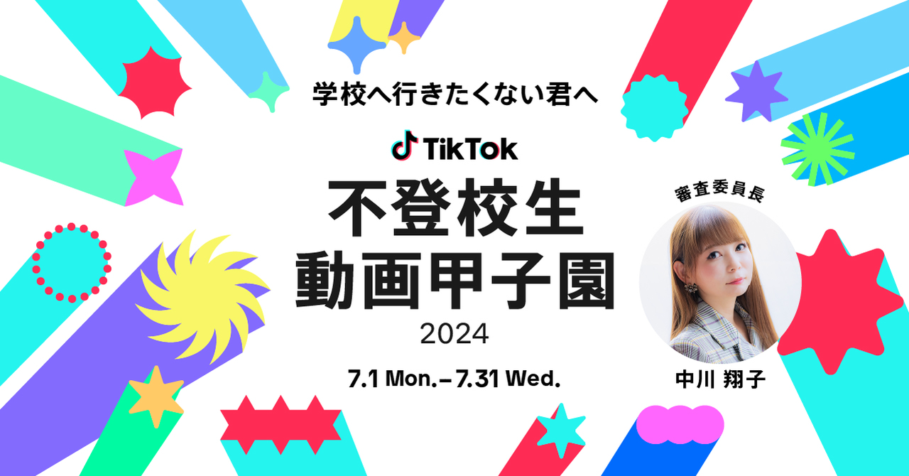TikTok、「不登校生動画甲子園2024」を開催決定!審査委員長に中川翔子が就任。7月1日より動画募集開始