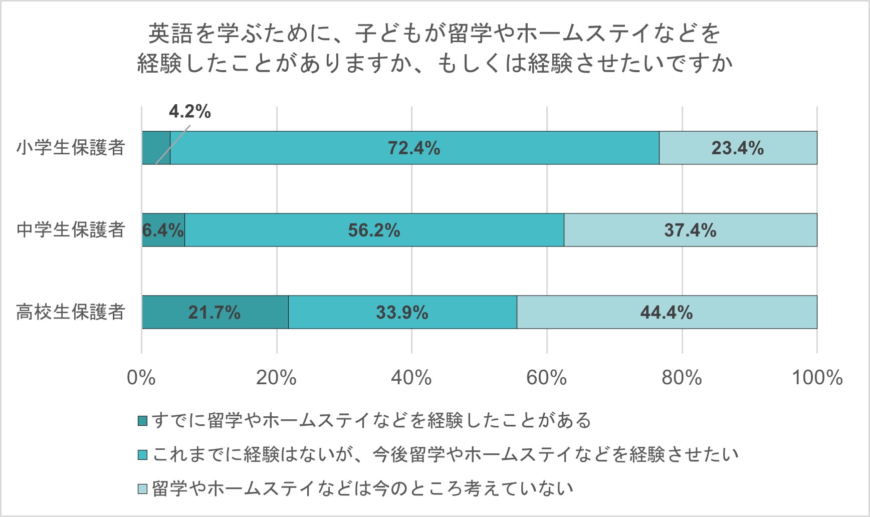 - 高校生保護者2割が「子どもが留学・ホームステイ経験あり」 小学生保護者7割「今後、子どもに留学させたい」