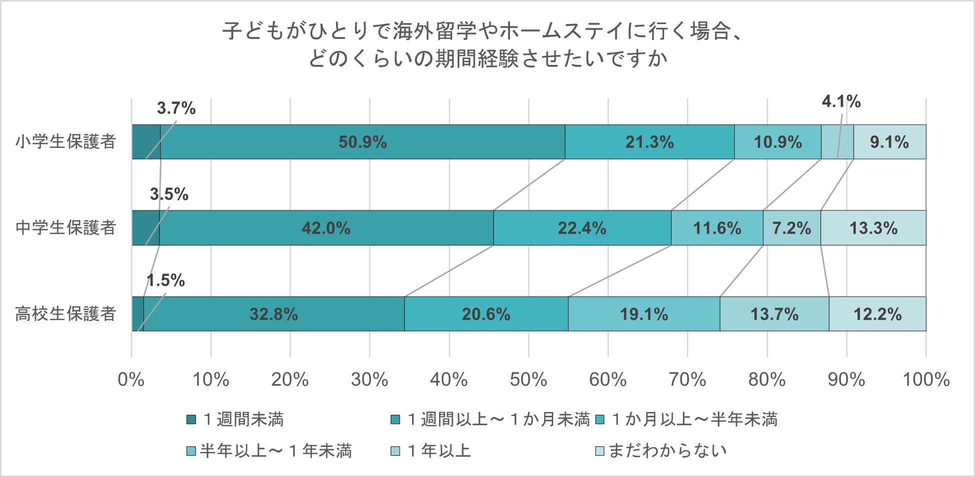 子どもがひとりで海外留学やホームステイに行く場合、どのくらいの期間経験させたいですか。