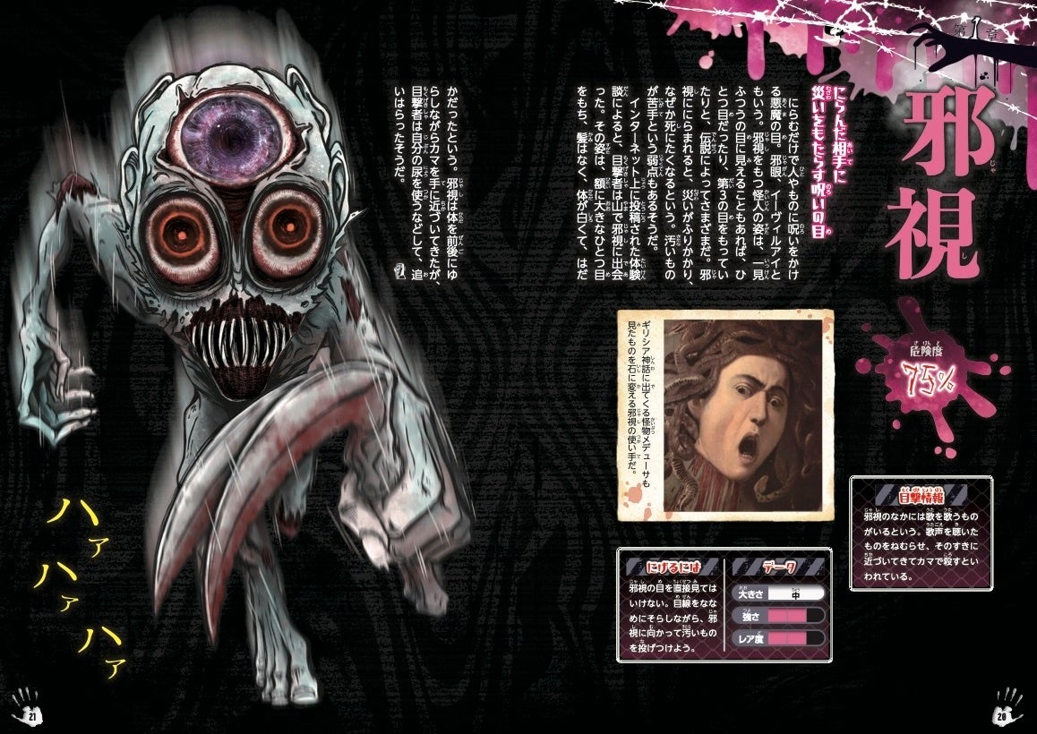 見開きごとに都市伝説を紹介し、その現象の特徴がひと目でわかるオールカラーのイラストを掲載! 都市伝説の内容が一目でわかるほか、危険度や大きさ、強さ、レア度などのデータも充実しています。