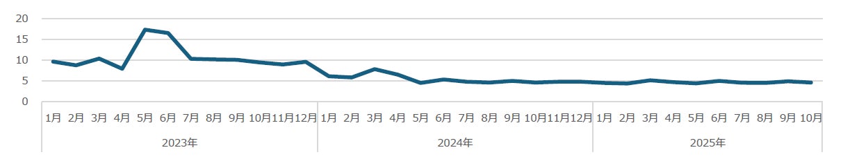 (注1)本指標は、SaaS版 CLIP STUDIO PAINTの有料サブスクリプション契約をしている顧客数をベースにした解約率(カスタマーチャーンレート)です。前月末日時の契約数に対する当月の解約数より算出しています。1人の顧客が複数の契約をしている場合は、それぞれの契約を別のものとして算出しています。また、年額契約に加え、必要な時だけに利用可能な月額契約プランも提供している製品の特性上、同じ顧客が契約・解約を繰り返す場合がありますが、それらをすべて含んで算出しています。