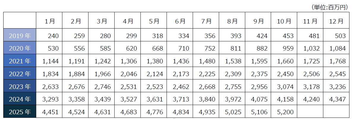 (注)ARR(Annual Recurring Revenueの略称で、契約更新のタイミングで全て更新される前提で、1年間で得られると想定される売上高)は、決済手段により3か月毎に1か月の日数(通常月は28営業日、特別月は35営業日)に変動があること、四半期決算期末月毎に決算調整を行っていること等から、月次では金額が変動するため、3か月移動平均を採用しております。