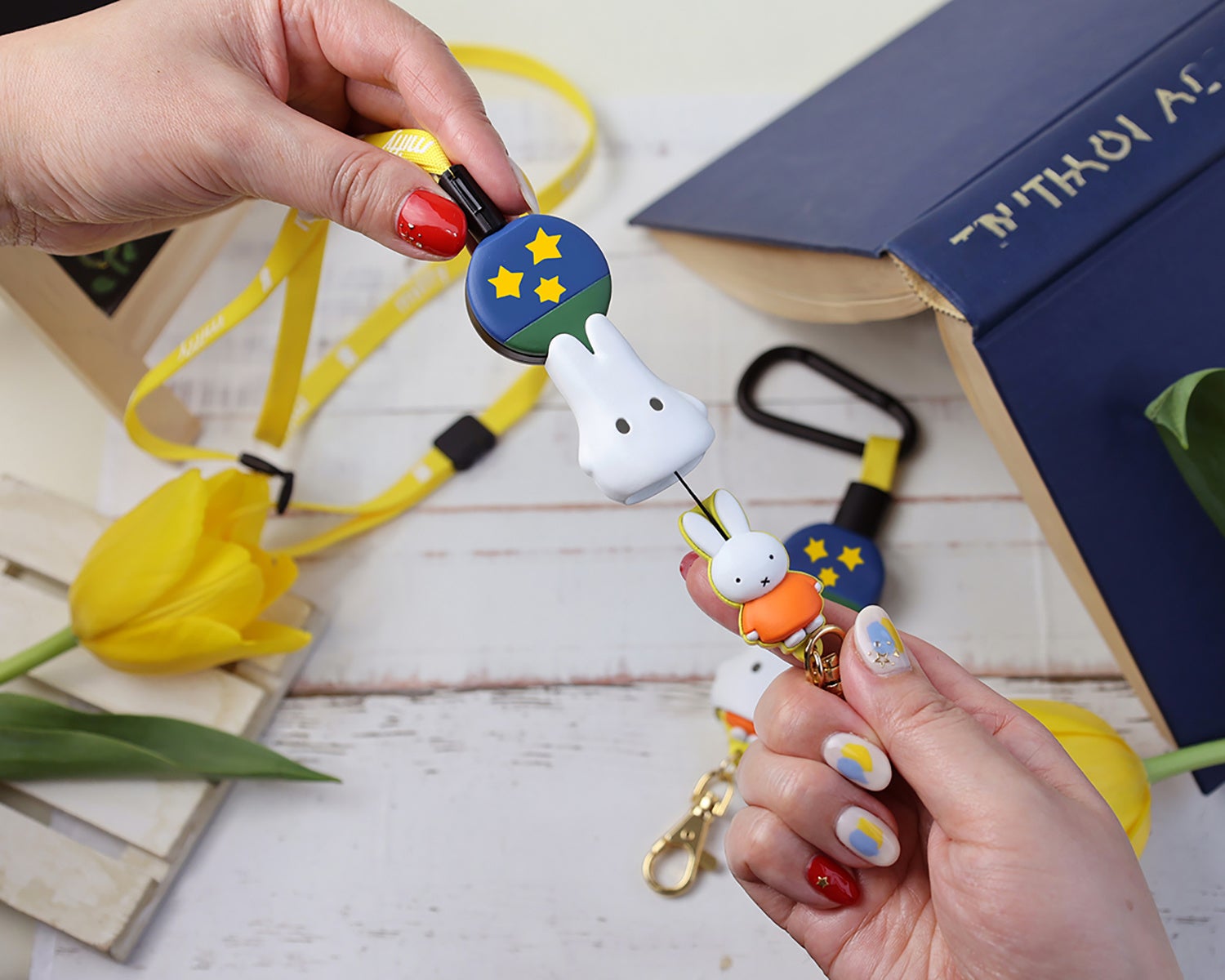 「ヒッパリール」は日々使うタッチ式のカードを持ち歩くのにぴったりのアイテムです。カードタッチの際にリールをひっぱることで生まれる、立体的なモチーフのアクションが日々の生活にちょっとした楽しさと笑顔を生み出します。そんな「ヒッパリール」に、オランダの人気絵本「ミッフィー」のシリーズが登場!絵本『うさこちゃん おばけになる』(作・絵:ディック・ブルーナ/訳:まつおか きょうこ/福音館書店刊)をモチーフに、リールをひっぱると、シーツを被っておばけごっこをしているミッフィーのかわいらしいアクションがお楽しみいただけます。首から下げられるネックストラップタイプの他、バッグやリュックなどにも付けやすいカラビナタイプの全2種がラインナップ。オフィスや学校で、リールをひっぱると「それかわいいね!」と相手の好奇心をひっぱり寄せることができるかも!?誰かとだれかをつなぐあそびゴコロいっぱいの「ヒッパリール ミッフィー」シリーズをぜひお楽しみください。