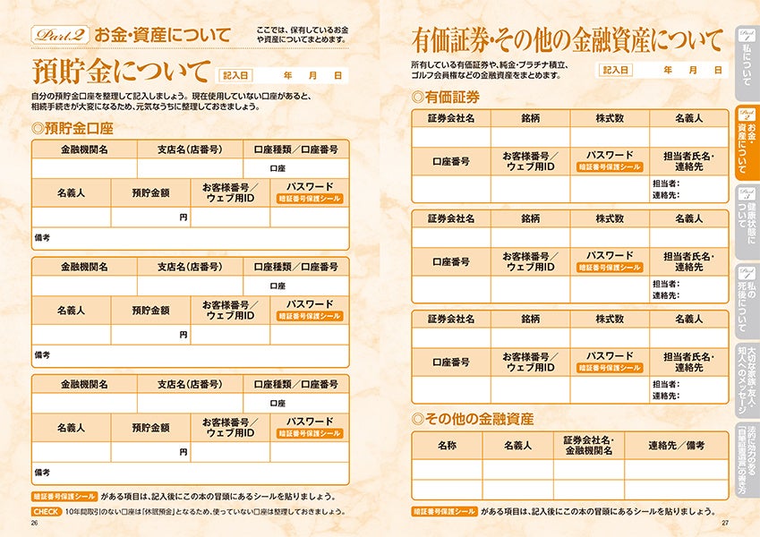 情報保護シールでパスワードを隠し、財産目録を作成できます
