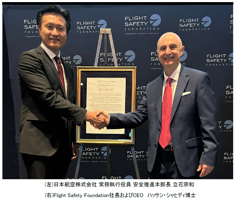 「 Flight Safety Foundationは、JALの卓越した安全への取り組みと組織学習を称えることを誇りに思います。過去数十年にわたり、JALは安全へのアプローチを変革し、強固で持続的な安全文化を築き上げました。」と、 Flight Safety Foundationの社長およびCEOであるハッサン・シャヒディ博士は述べました。