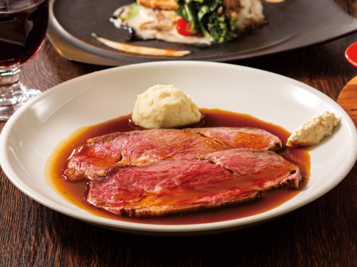 旨味たっぷりグレイビーソースと、クリーム仕立てのレフォールとともにいただく『低温焼成やわらかローストビーフ』や、低温でじっくり12時間加熱し、驚きの柔らかさを味わえる『厚切リやわらかポークグリルたっぷり玉ねぎ醤油ソース』など、アルコールと相性抜群なメニューも充実!