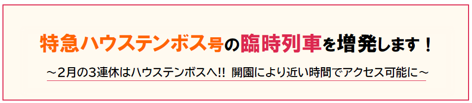 ~2月の3連休はハウステンボスへ!! 開園により近い時間でアクセス可能に~