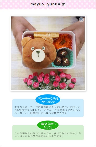検索いただくと、みなさまから寄せられた力作のお弁当写真がご覧いただけますので、
