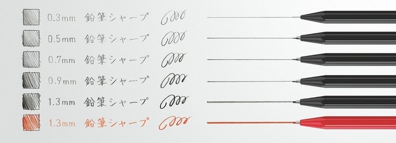 ※鉛筆シャープ(2020年11月発売)は0.3mm~1.3mmの5種類の芯径をラインアップしています。