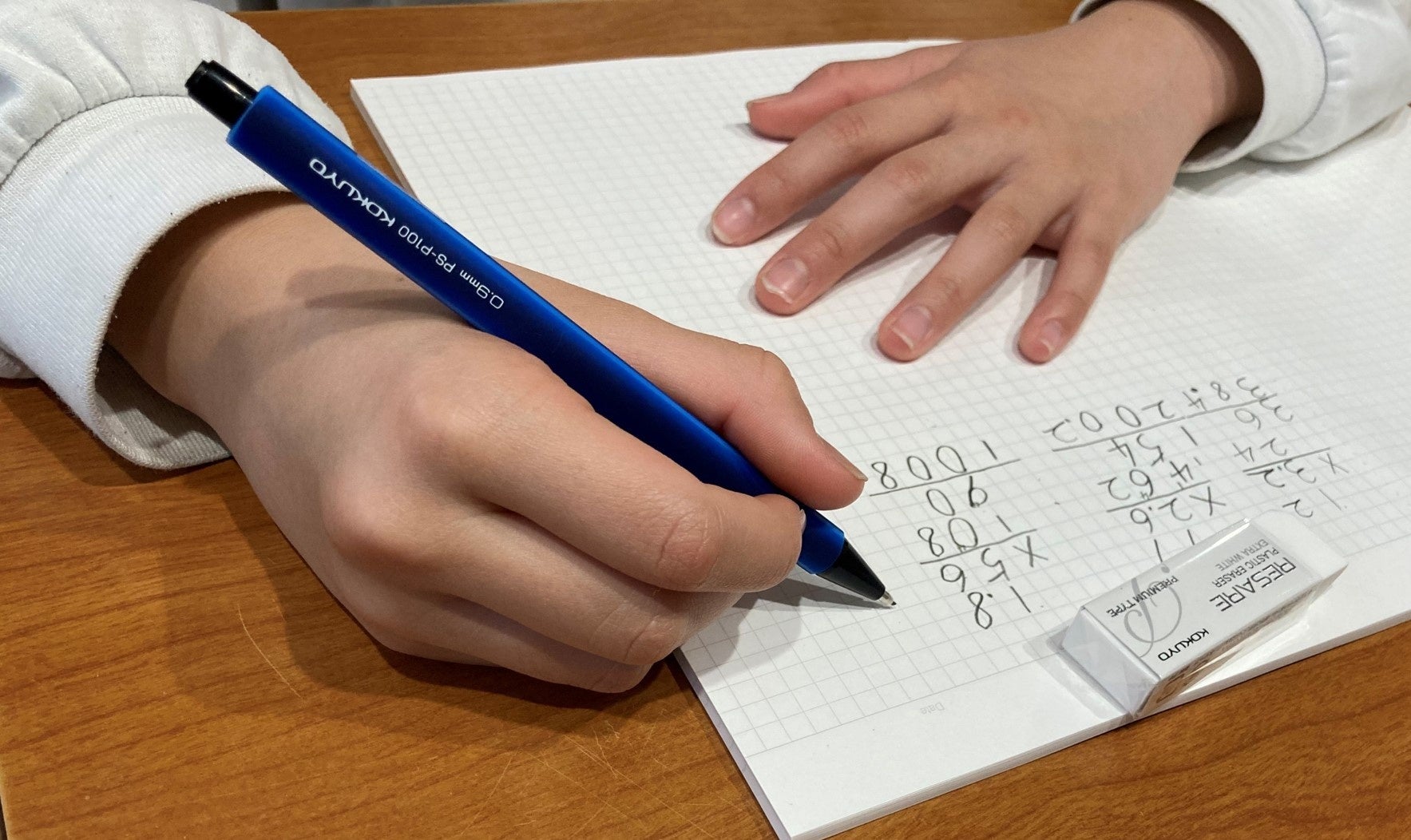 「鉛筆シャープ(スタンダード)」は、0.9mm、1.3mmの太い芯径のバリエーションを揃える、鉛筆のようななめらかな書き心地のシャープペンシルです。小山田南小は2025年4月より、読み書き、計算力などの基礎学力の向上に必要な”筆記具の正しい持ち方の習得”、”運筆力の向上”を目的とし、全校児童を対象に鉛筆シャープの導入を決定しました。程よい太さで力み過ぎずに持てることで、運筆に良い効果が生まれること、芯が丸まらず集中力を切らさずに使えることなどを期待し採用されました。かねてから鉛筆シャープを推奨する教育クリエイターの隂山英男氏の基礎学力を高める勉強法を同時導入することで、相乗効果に期待を寄せています。