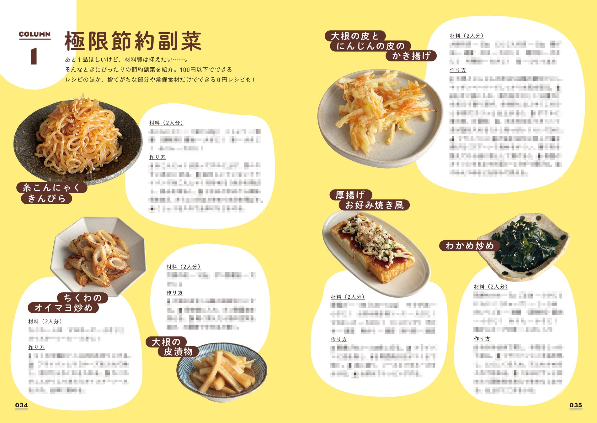 また、献立だけでなくあと1品欲しいときに役立つ100円以下でできる節約副菜レシピも紹介しています。普段は捨ててしまいがちな野菜の皮でできる0円レシピも。