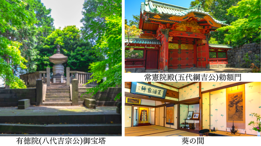 寛永寺では通常非公開エリアの「有徳院殿(八代吉宗公)御宝塔」「常憲院殿(五代綱吉公)勅額門」「葵の間」を特別に拝観し、当ツアーでしか得られない体験価値を提供します。