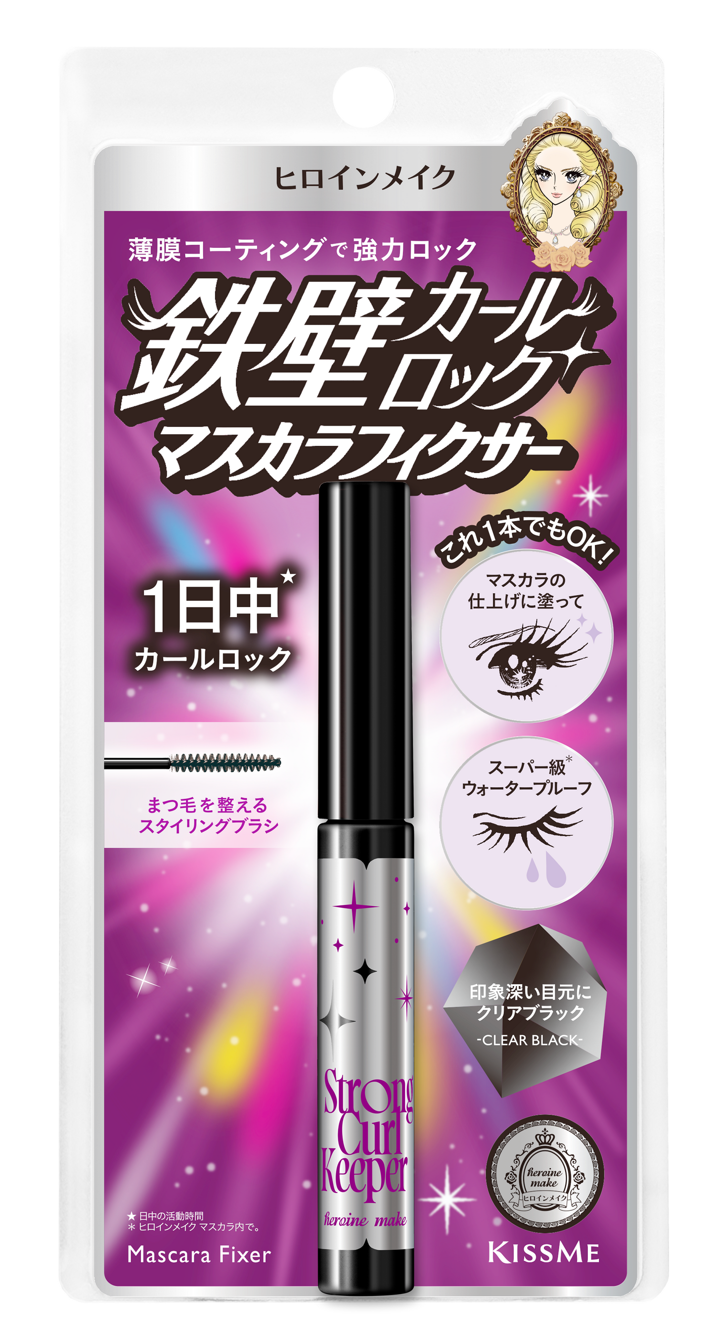 ヒロインメイクから、マスカラの仕上げに塗ってヒロイン級の上向きカールを強力固定するマスカラフィクサーの新色「クリアブラック」が登場!