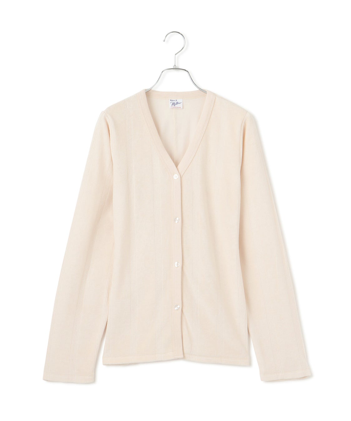 程よく肉感のある、柔らかい肌あたりのベロア素材を使用したカーディガン。