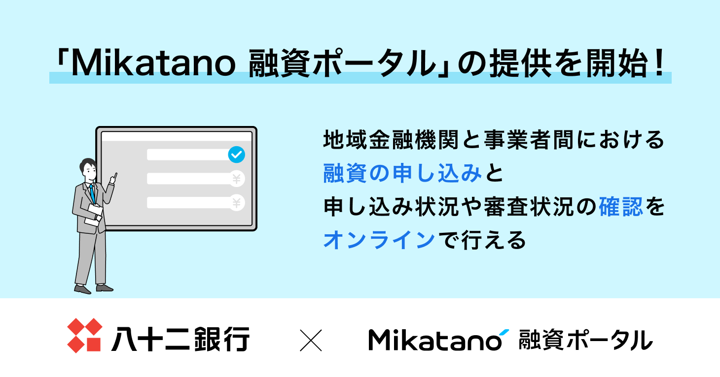 Money Forward X、融資に関わる手続きをオンラインで行える『Mikatano 融資ポータル』の提供を開始