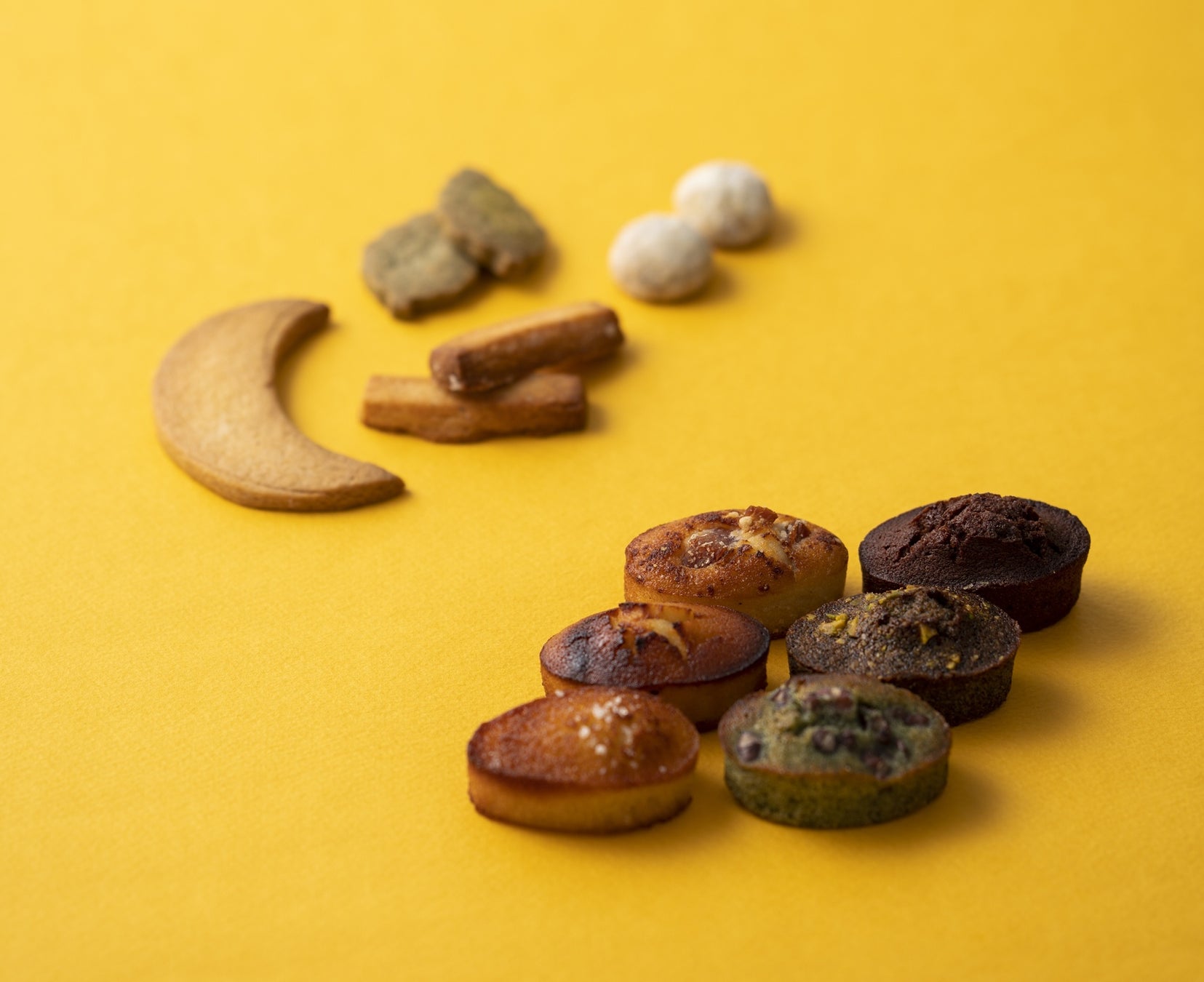 三宮のイノベーティブレストラン「柏木」で、コースの最後のプティフールが評判を呼び、昨年10月に誕生したフィナンシェ専門店。トリュフやチーズなどお酒に合うフレーバーに注目!会場で焼き上げる実演も。